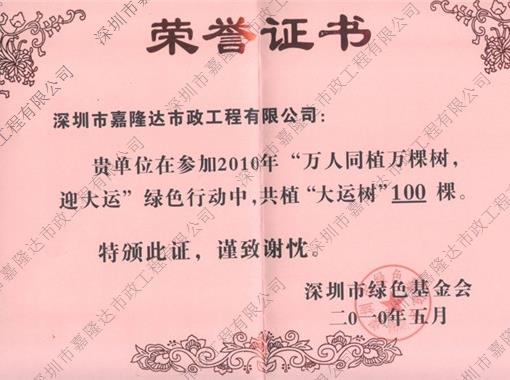 大運(yùn)樹榮譽(yù)證書